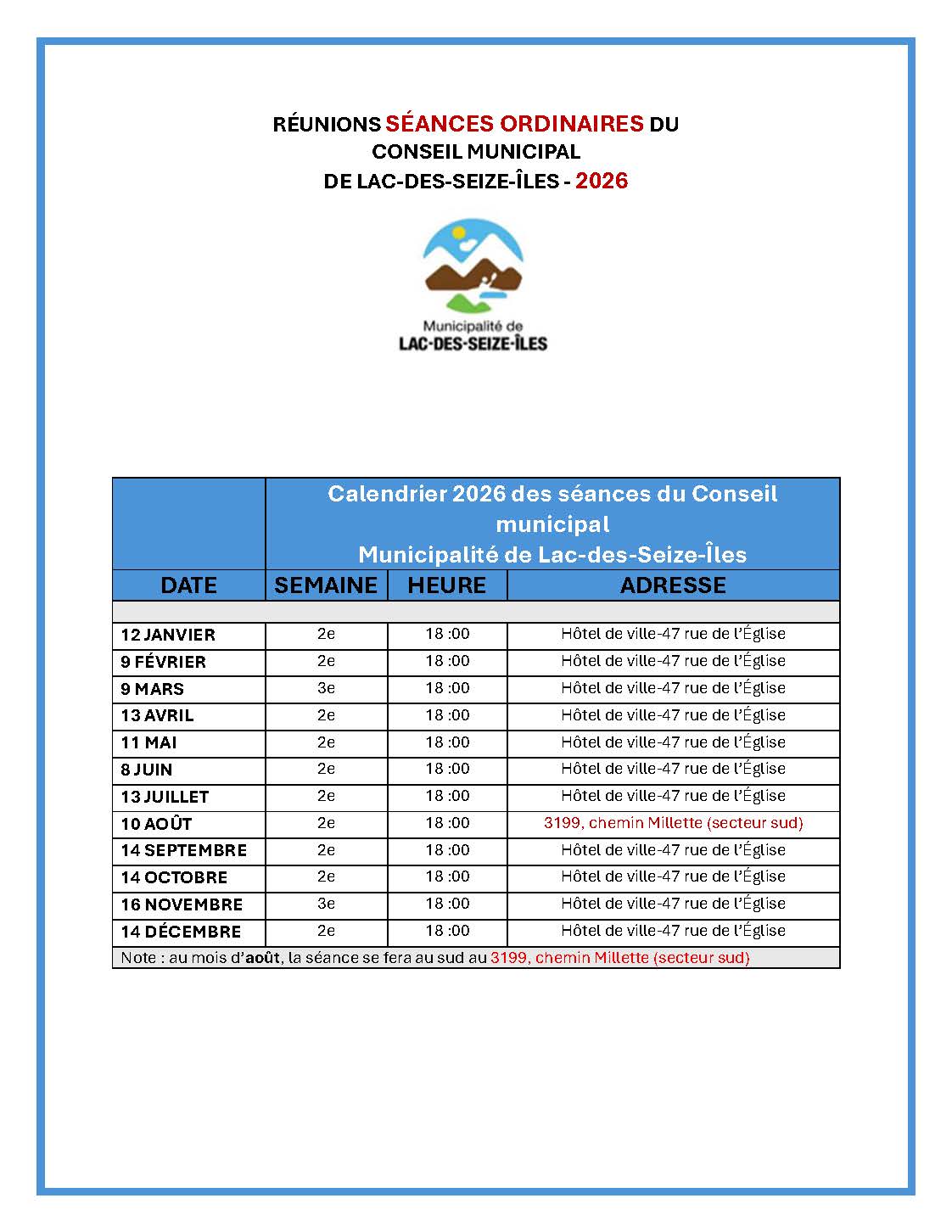 • Calendrier 2026 des séances du Conseil municipal vf